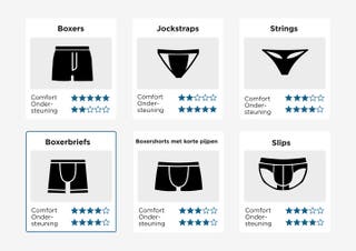 Wat je wint aan comfort, verlies je aan ondersteuning. Boxers kunnen wat te los zijn voor actieve kleding en ze kunnen opstropen onder strakzittende broeken. Niet de beste keuze als je op zoek bent naar een slank silhouet.