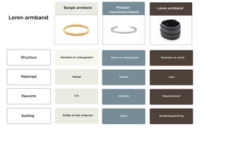 - leren manchetarmband als je een brede, zachte en strakzittende armband wilt met een matte leren textuur.