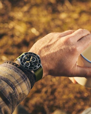 Het front van het horloge is waar je naar kijkt, maar de kast is wat je bedient. Het was voor ons belangrijk dat het horloge onder alle omstandigheden makkelijk leesbaar zou zijn, of dat nu op 100 meter onder water was of op 8000 meter boven zeeniveau. Daarom kozen we voor de lay-out van het klassieke duikershorloge met dikke wijzers en opvallende accenten met Zwitsers lumen voor helder nachtelijk zicht.
