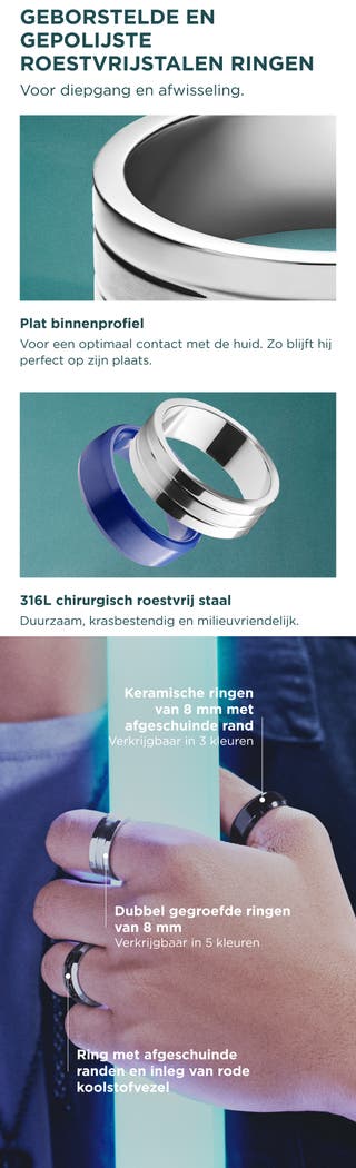 Kies een kleur - Ferrum | 8 mm Vlakke Goudkleurige Gepolijste & Geborstelde Roestvrijstalen Dubbelgegroefde Ring