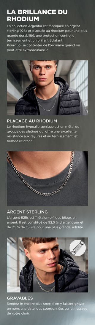 Argentia | 925s | Collier Figaro en argent sterling plaqué rhodium 6mm