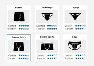 Ce que vous gagnez en confort, vous le perdez en soutien. Les boxers peuvent être un peu trop amples pour les vêtements actifs, et ils peuvent s'entasser sous des pantalons ajustés. Pas le meilleur choix si vous recherchez une silhouette élégante.