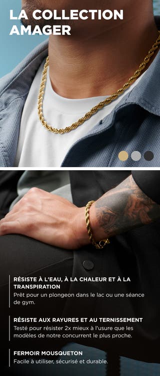 • Confort de port: Maillons lisses et arrondis qui reposent à plat sur la peau pour un confort tout au long de la journée.
