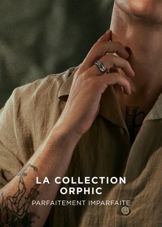 Orphic | Chevalière en acier inoxydable argenté à finition volcanique et zircones noires