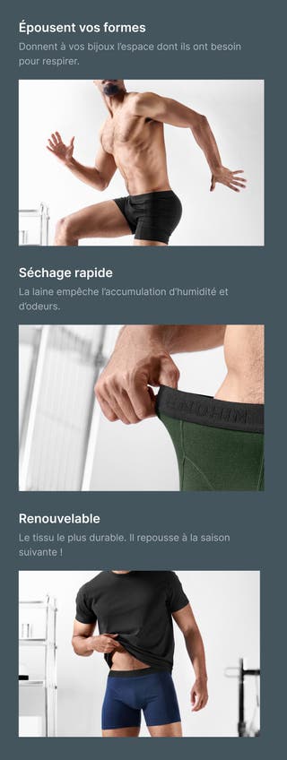 FeatherFeel | Boxer bleu marine en laine mérinosFeatherFeel | Boxer noirs en laine mérinosFeatherFeel | Boxer vert olive en laine mérinos