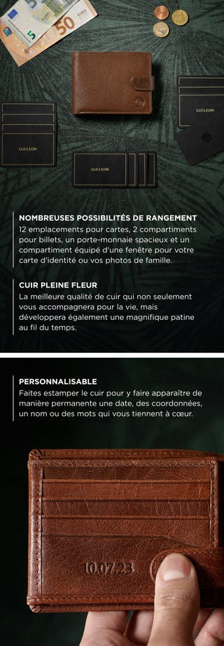 - Peut contenir jusqu'à 20 cartes, espèces et reçus